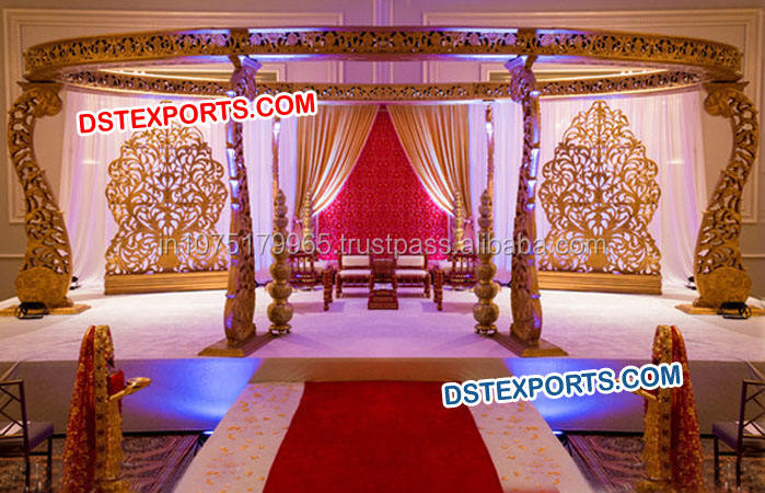 ชุดมณฑาปงานแต่งงานขนาดใหญ่ แกะสลักด้วยมือจากไม้ งานแต่งงานแบบอินเดีย มณฑาปงานฝีมือจากไม้ ลักษณะแบบดั้งเดิม ชุดมณฑาปไม้ทำมือจากอเมริกา