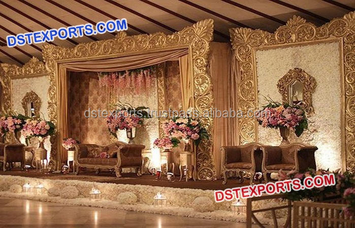 แกรนด์แต่งงานเวทีหลังกรอบออกแบบพิเศษงานแต่งงานเวทีหลังกรอบผนัง Rajwada สไตล์งานแต่งงานเฟรมไฟเบอร์