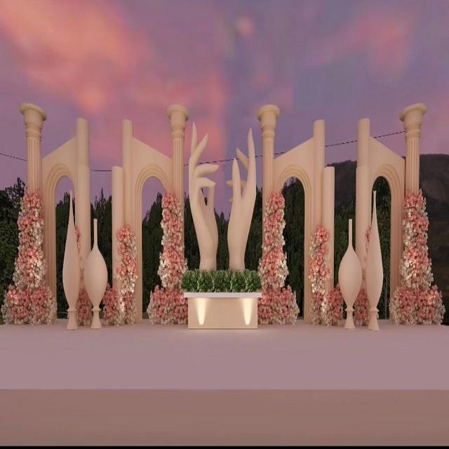เวทีงานแต่งงานในร่มขนาดใหญ่ทำจากไม้โดย Shobha Jain Impex ผลิตที่เดลี อินเดีย