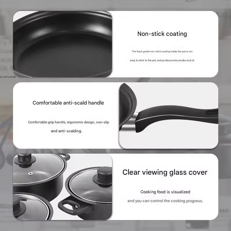 ชุดเครื่องครัวหินแกรนิตเคลือบกันติด 13 ชิ้น ประกอบด้วยกระทะ หม้อซุป หม้อนม ตะหลิว ชุดอุปกรณ์ครัวครบชุด