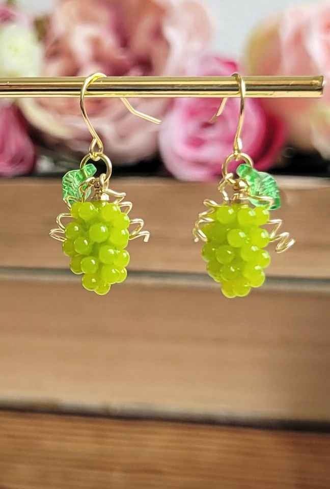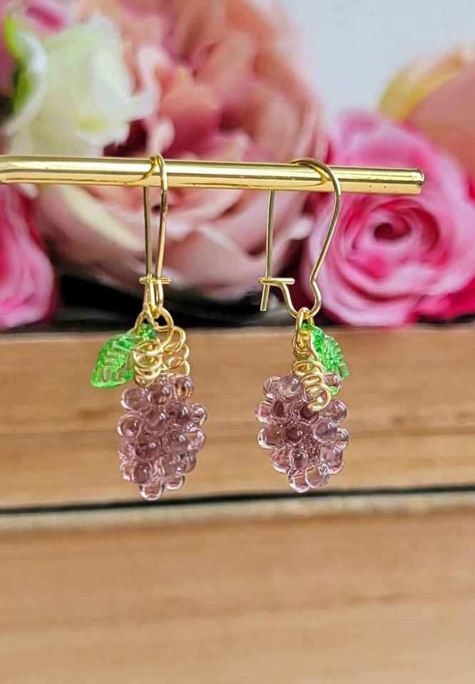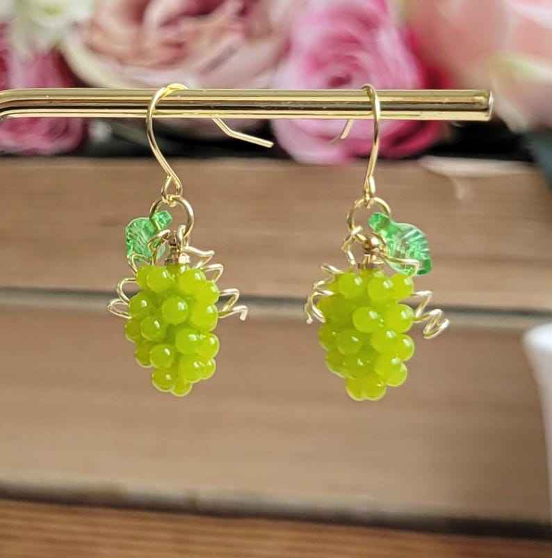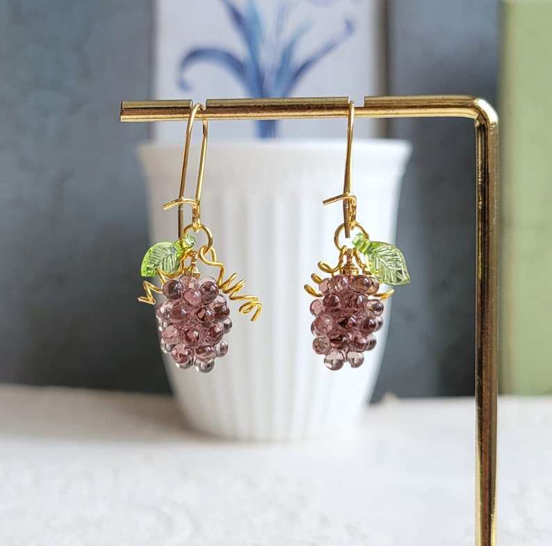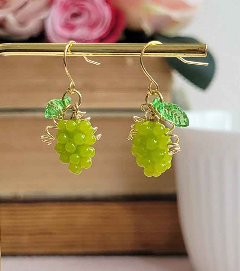 ต่างหูทรงหยดน้ำองุ่นทำด้วยมือทำจากเรซินเครื่องประดับ925เงินสเตอร์ลิง14K ชุบทองของขวัญอาหารน่ารักสำหรับเธอ