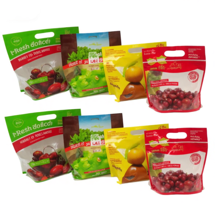 ผู้ผลิตถุงบรรจุภัณฑ์ป้องกันองุ่น ขายตรง ปลอดสาร BPA ถุงพลาสติกแบบมีรูสำหรับบรรจุผลไม้และอาหาร ถุงตั้งได้ LDPE