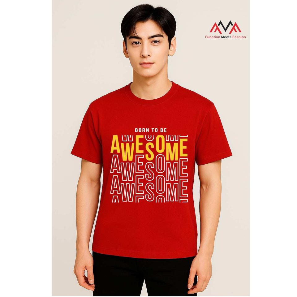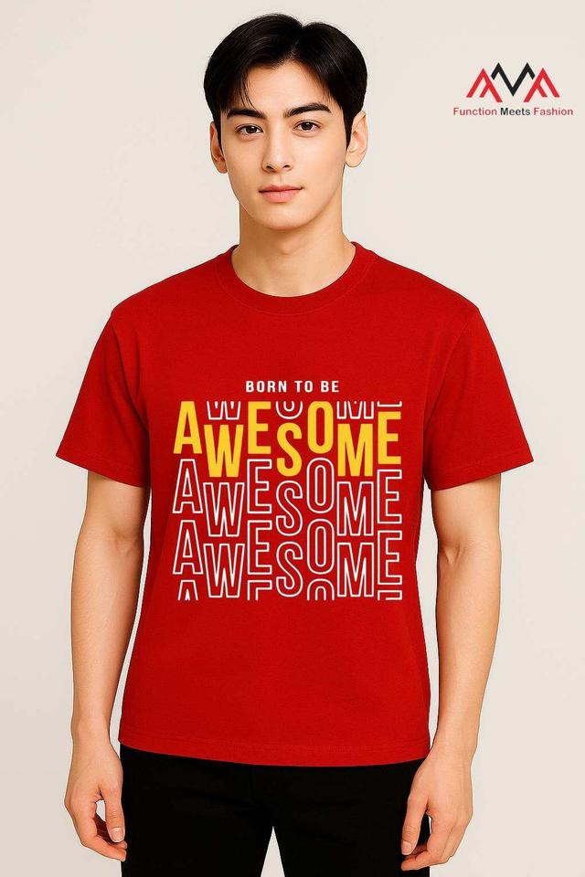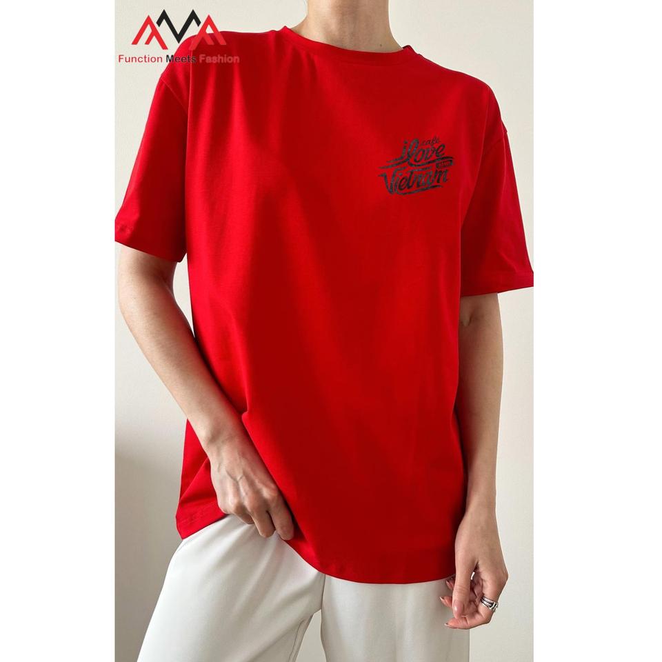 Beachwear เสื้อยืดสีแดงคอกลมสำหรับผู้ชายผ้าโพลีเอสเตอร์แบบลำลองเสื้อแนวสตรีทพอดีตัวปกติพิมพ์ลายด้านหน้าเสื้อ100% แขนสั้น
