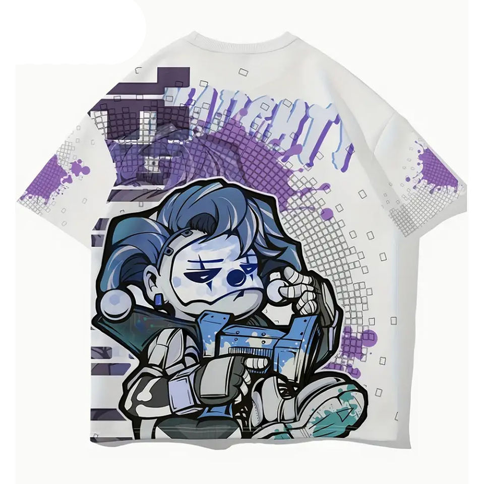 เสื้อยืดพิมพ์ลายกราฟิกสีดำดีไซน์หุ่นยนต์ล้ำสมัยชุดลำลองเสื้อยืดโอเวอร์ไซส์ใส่ได้ทุกวัน100% เสื้อยืดผู้ชายผ้าคอตตอน
