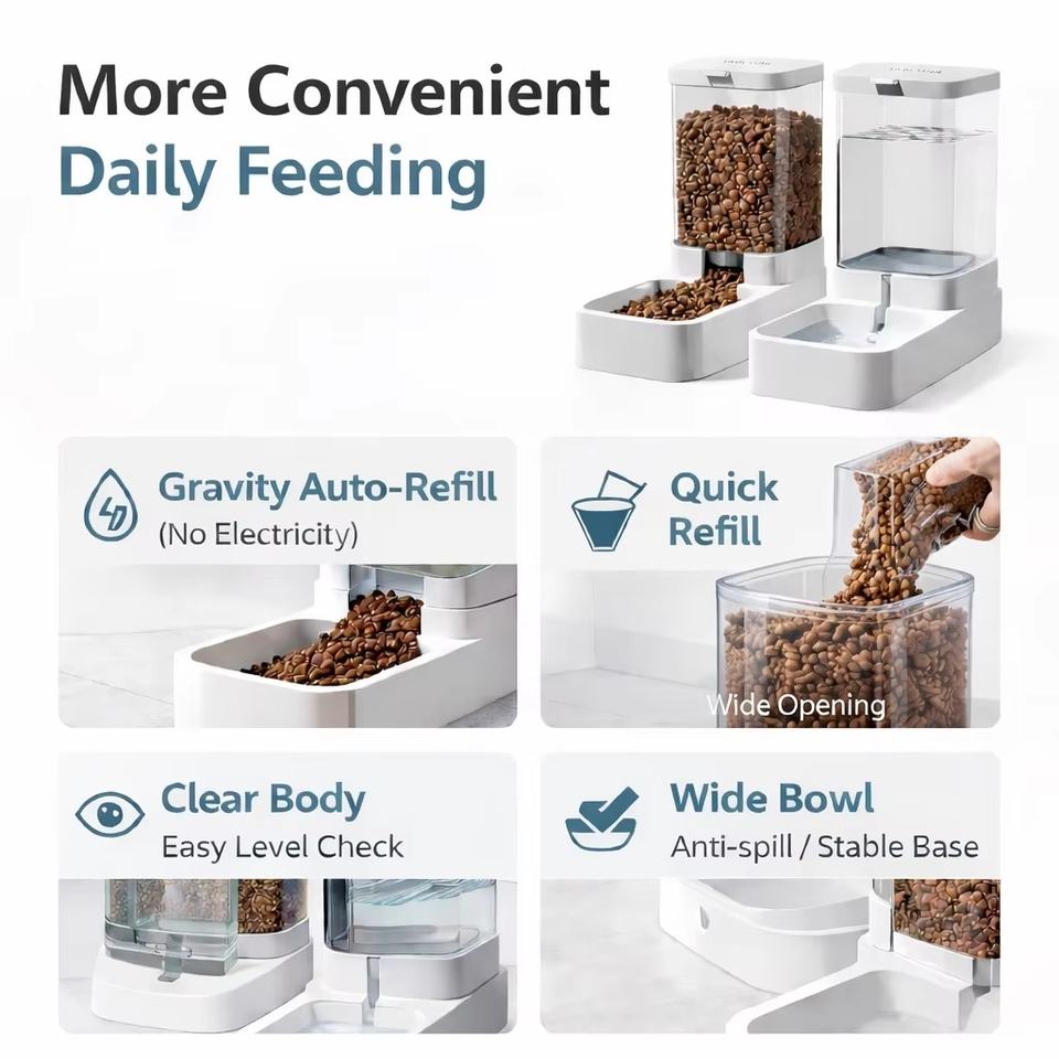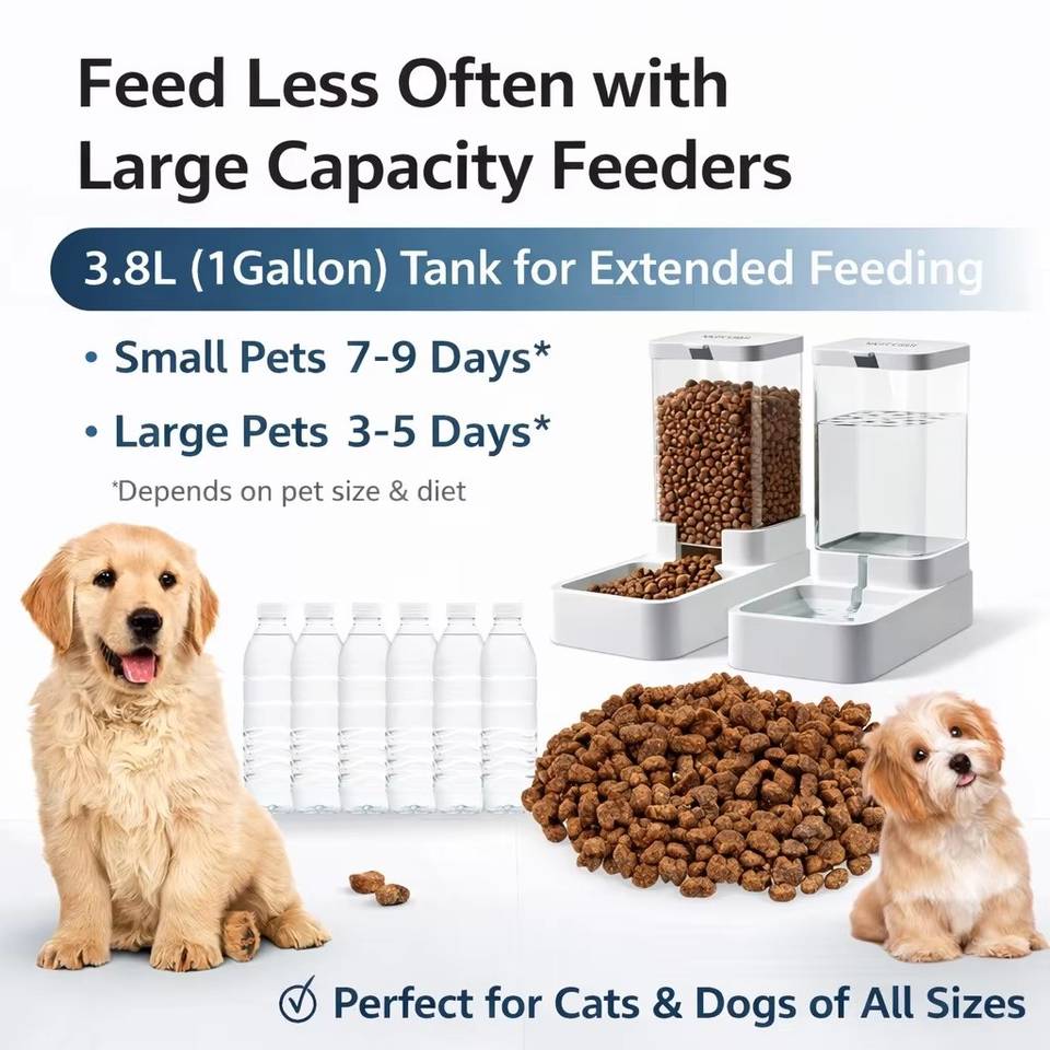 เครื่องให้อาหารสัตว์เลี้ยงแบบพกพา Gravity Auto-Refill ดีไซน์ทันสมัย แข็งแรงทนทาน ผลิตจากพลาสติก สำหรับแมวและสุนัข - ถังน้ำ 3.8 ลิตร และความจุอาหาร 2.1 กิโลกรัม