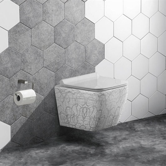 แรงโน้มถ่วงฟลัชชิงผนังแขวนไม่มีขอบสุขภัณฑ์ห้องน้ำโครเมี่ยมไฟฟ้าสีห้องน้ำผลิตภัณฑ์