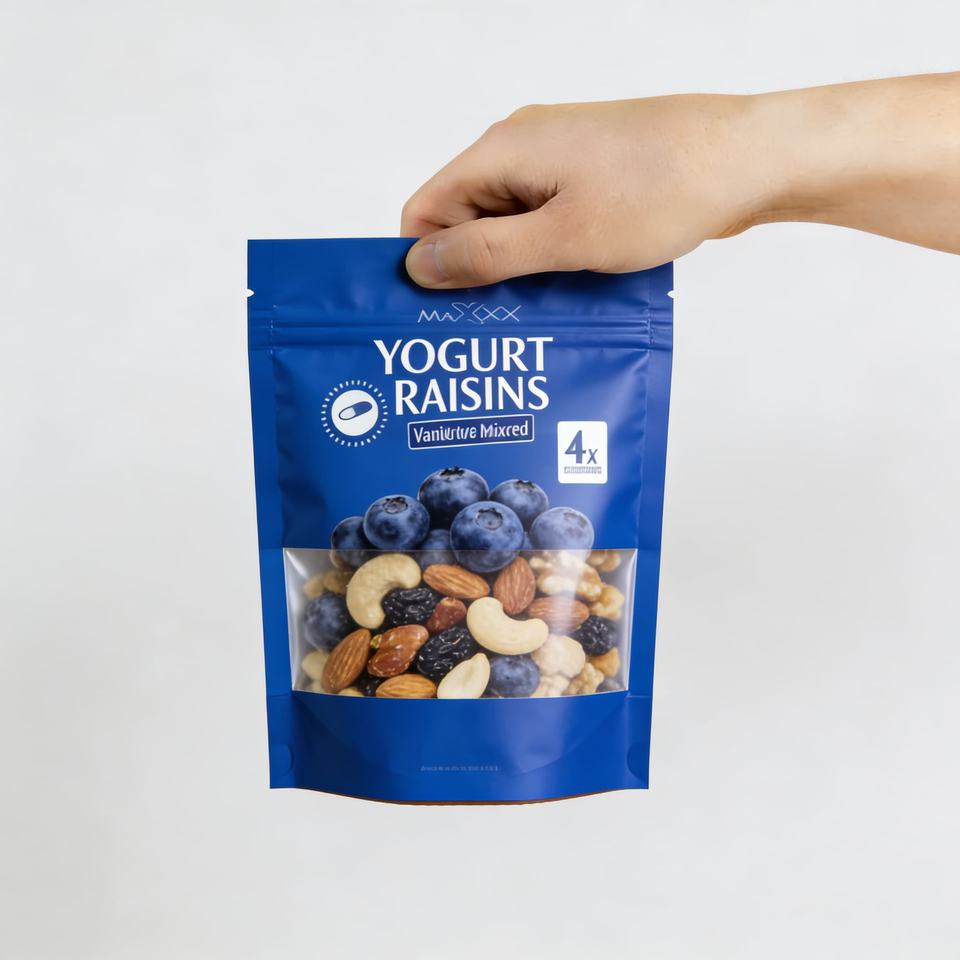 ถุงบรรจุภัณฑ์แบบตั้งได้ มีหน้าต่าง ป้องกันความชื้น พิมพ์กราเวียร์ ปิดผนึกได้ สำหรับบรรจุขนมขบเคี้ยว เช่น ถั่ว ชิป และผลไม้อบแห้ง
