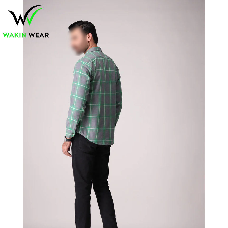 เสื้อเชิ้ตผ้าสักหลาดระบายอากาศไซส์ใหญ่พิเศษสีเทาและสีเขียว