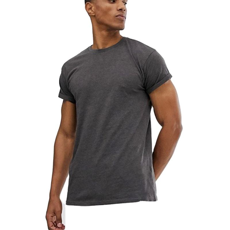 เสื้อยืดสีเทาสำหรับผู้ชายเสื้อยืดแบบสวมแขนครึ่งแขนเสื้อทรงสลิมฟิตพร้อมโลโก้และดีไซน์ตามสั่ง
