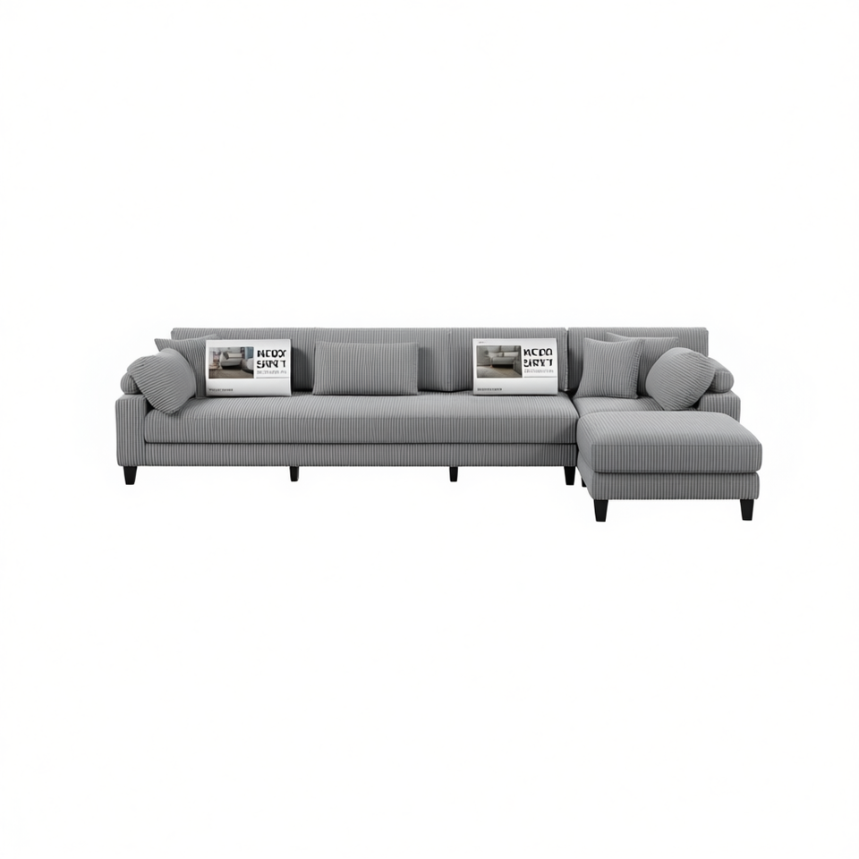 ชุดโซฟาผ้ากำมะหยี่สีเทาแบบแยกส่วนรูปตัว L 5 ชิ้น ดีไซน์ทันสมัยสำหรับห้องนั่งเล่น พร้อมหมอนและออตโตมัน