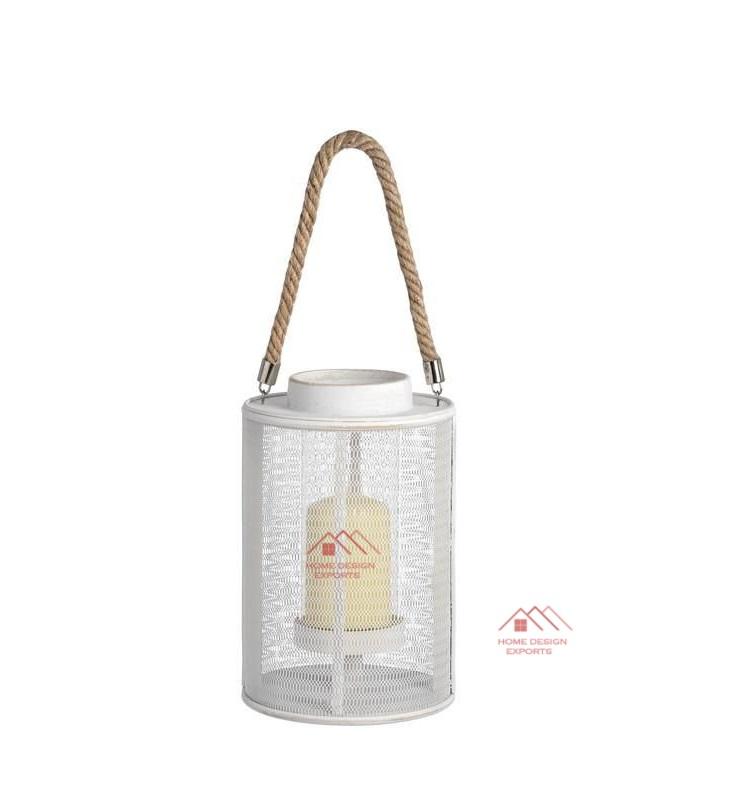 เทียนเคลือบสีเทาพร้อมที่จับเชือกทำจากโลหะเฮอร์ริเคนทำด้วยมือ