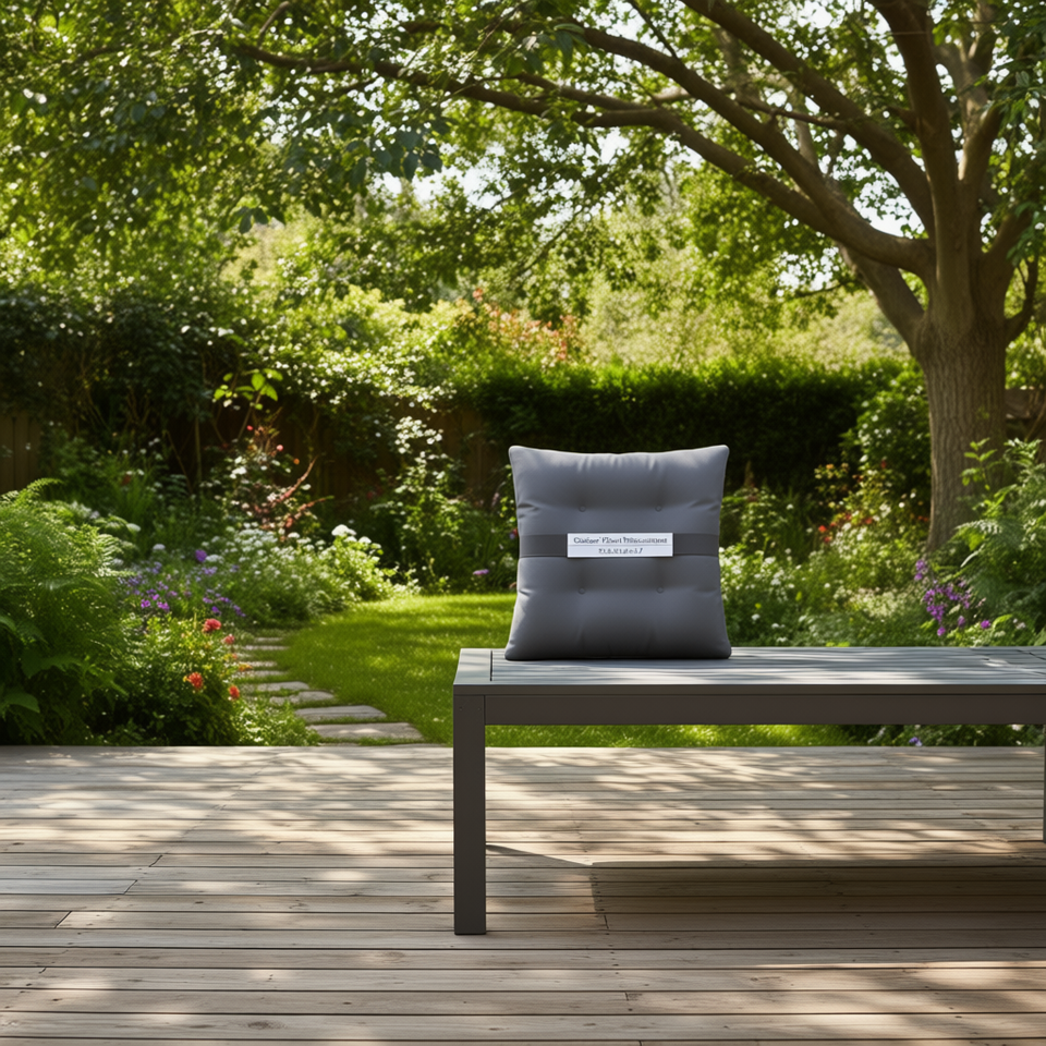 หมอนอิงผ้าสีเทาสำหรับกลางแจ้ง ขนาด 23.6x23.6x4.7 นิ้ว รูปทรงสี่เหลี่ยม ทนน้ำ บุผ้านวม ใช้ได้ทุกฤดู