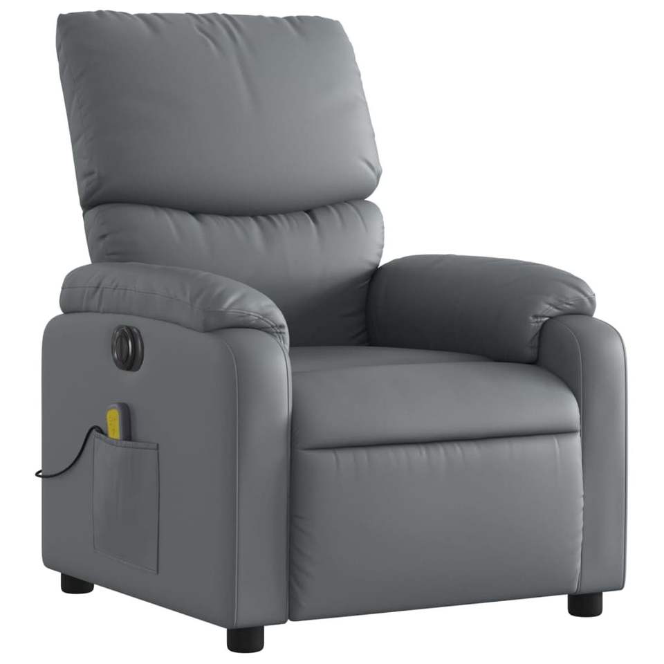 เก้าอี้นวดไฟฟ้าหนังเทียมสีเทาโครงสร้างโฟมไม้โลหะ