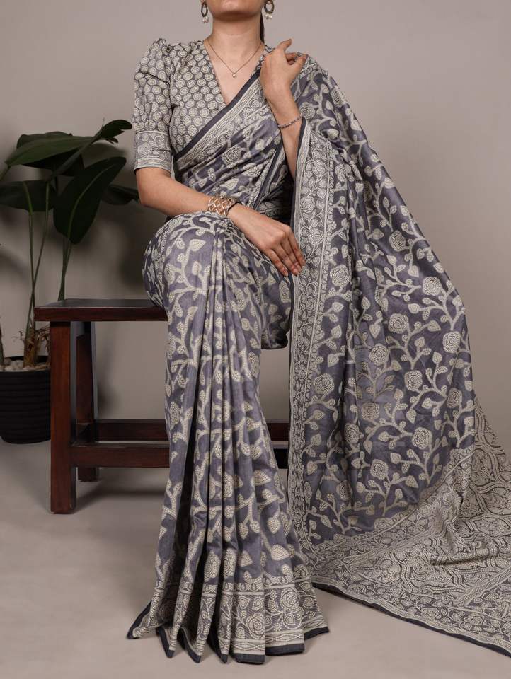 ผ้าซิ่นลายดอกไม้แบบออร์แกนิก เนื้อผ้าฝ้ายผสมไหมสีเทา ยาว 5.5 เมตร สไตล์ดั้งเดิม ราคาขายส่ง เหมาะสำหรับงานปาร์ตี้