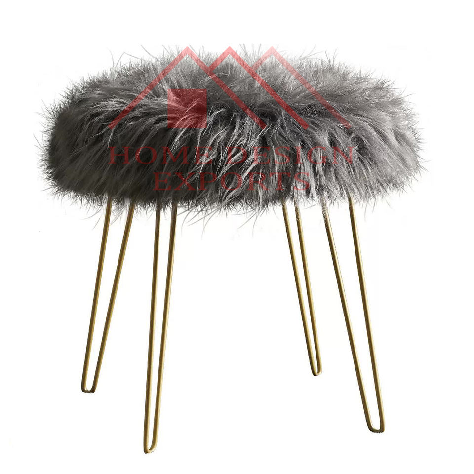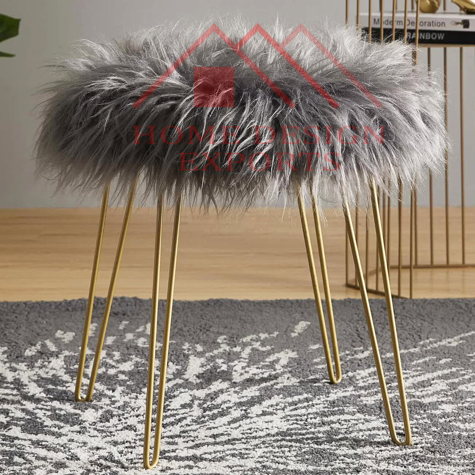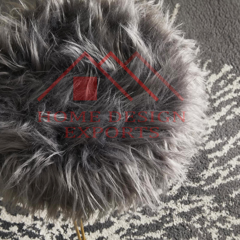 เก้าอี้สตูลขนสัตว์สีเทา เฟอร์นิเจอร์ห้องนั่งเล่น