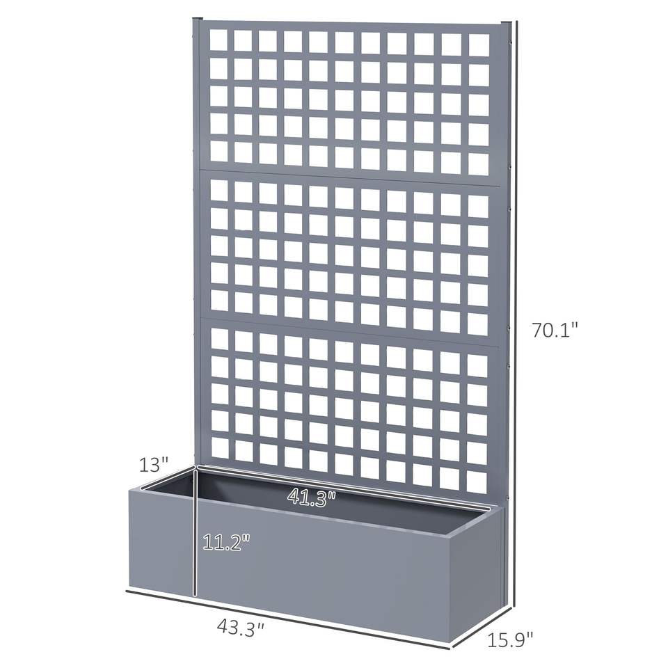 กระบะปลูกต้นไม้ยกพื้นสีเทาเคลือบกัลวาไนซ์ ขนาด 43 x 16 x 70 ซม. พร้อมโครงตาข่ายสำหรับปลูกไม้เลื้อยและผัก
