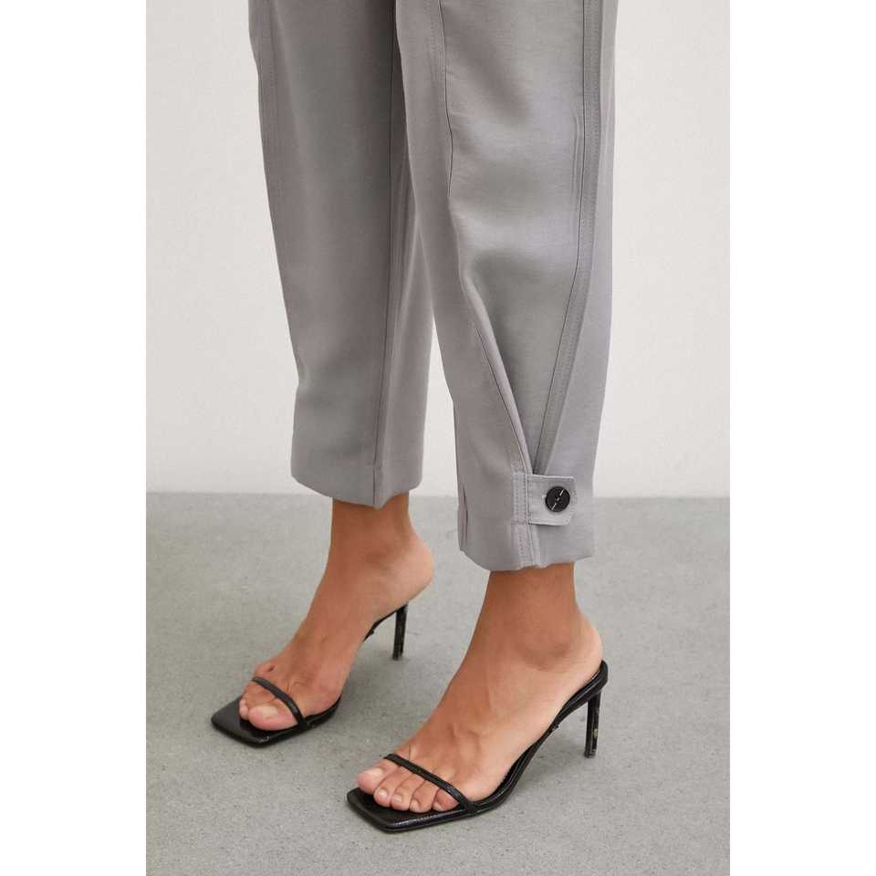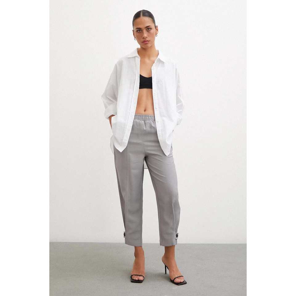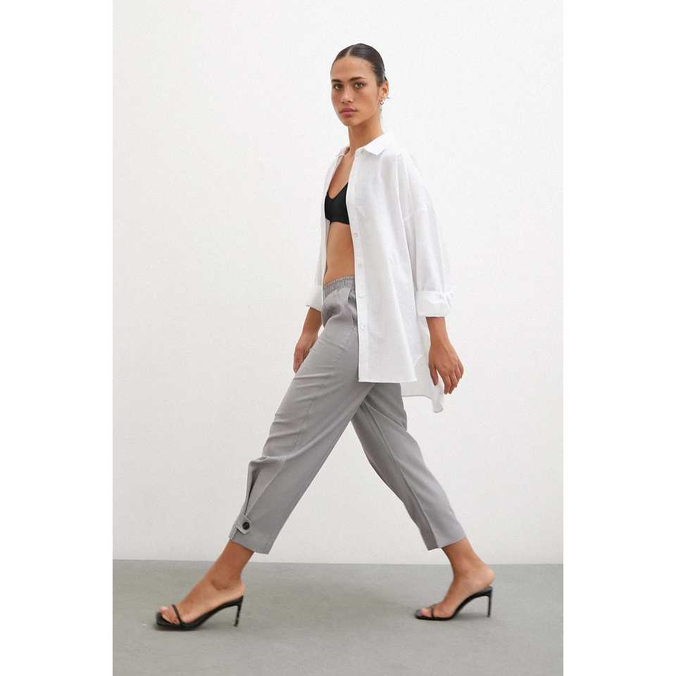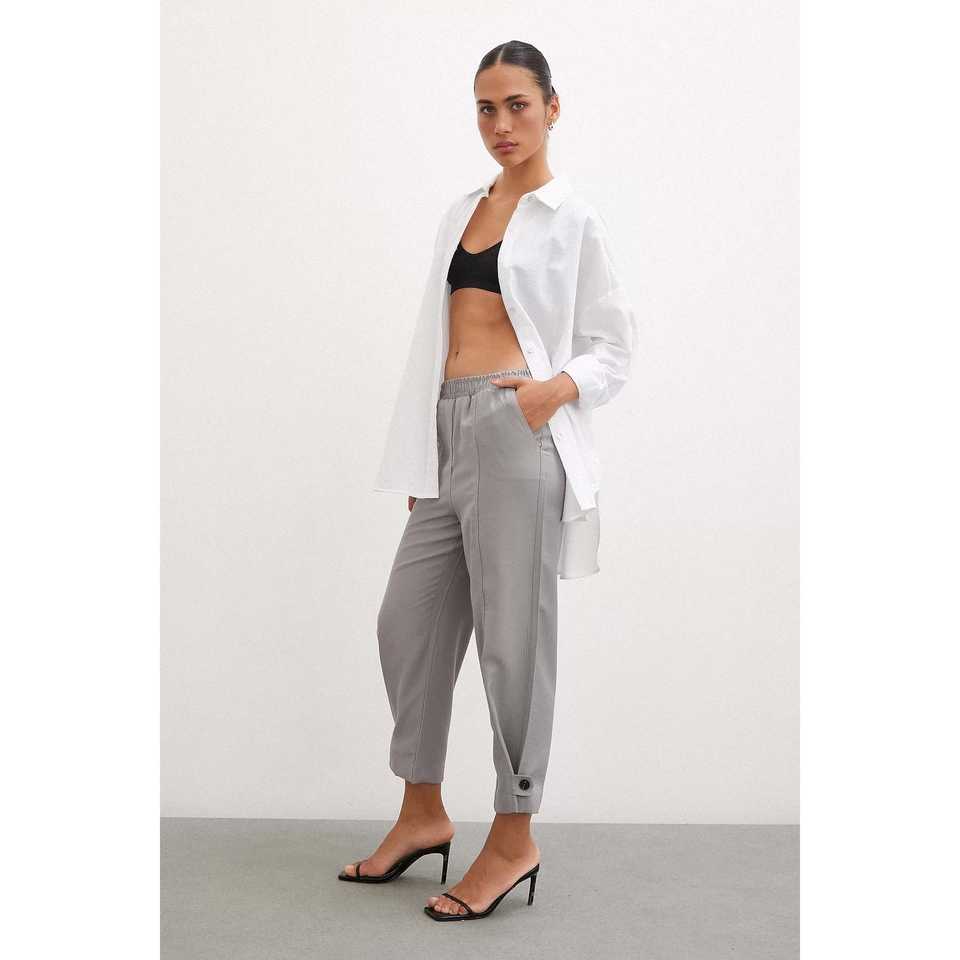 กางเกงขายาวสีเทาทรงหลวมพร้อมขอบเอวยางยืดและปลายขาแบบยืดหยุ่นสำหรับผู้หญิง