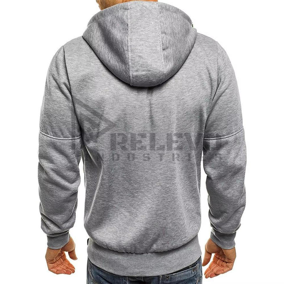 เสื้อฮู้ดซิปผู้ชายสีเทาเรียบง่าย คุณภาพสูง ผลิตจากผ้าซิปคุณภาพดี สำหรับผู้ชาย ดีไซน์ทันสมัย สีตัดกัน ราคาประหยัด