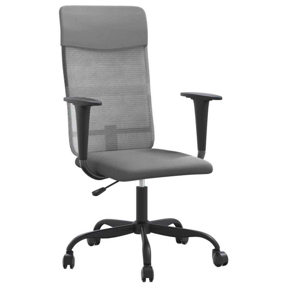 ผ้าตาข่ายสีเทาและเก้าอี้สำนักงานหนังเทียม