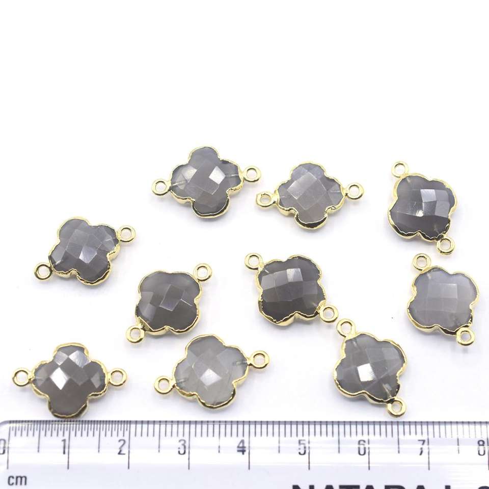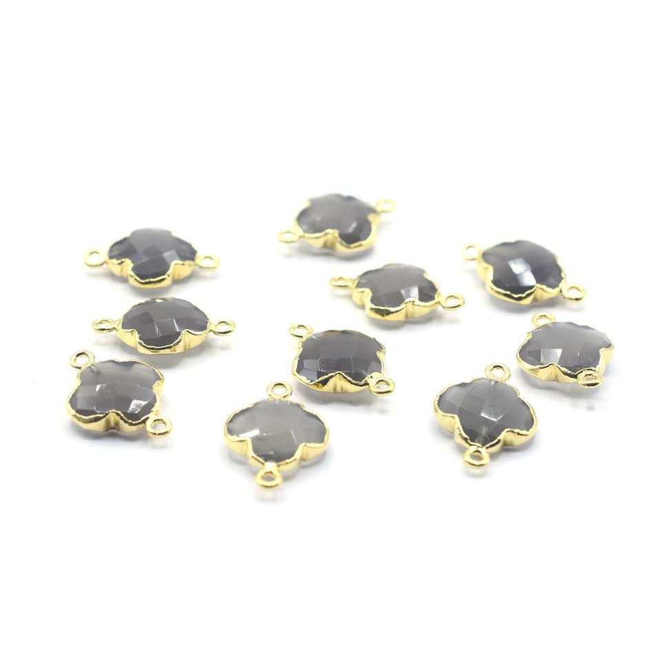 Product Name:Gray Moonstone Quatrefoil Shape Gold Plated Connector