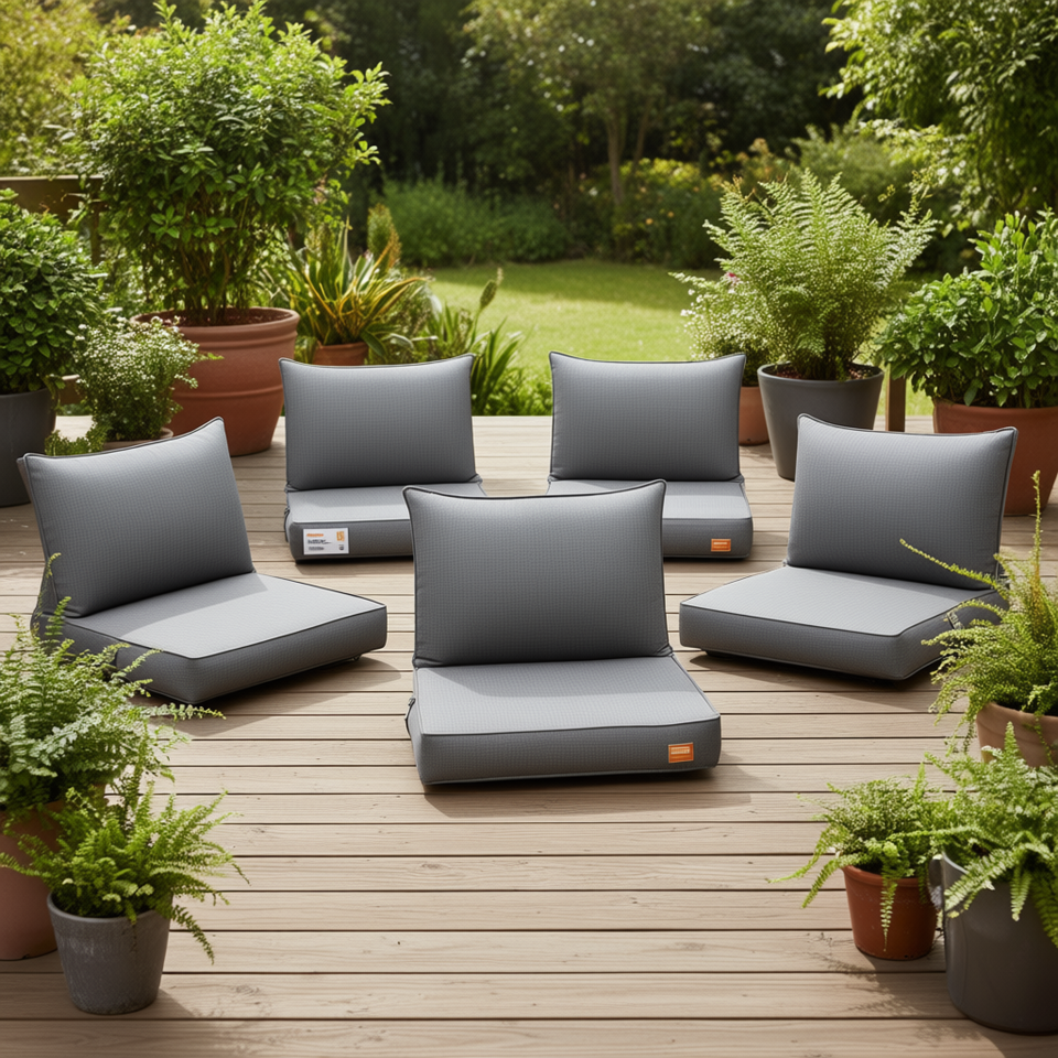 ชุดเบาะเก้าอี้กลางแจ้งผ้าอ็อกซ์ฟอร์ดสีเทา ชุด 4 ชิ้น โฟมไฟเบอร์ ทนทาน รูปทรงสี่เหลี่ยมผืนผ้า ถอดซักได้ ใช้ได้ทุกฤดู