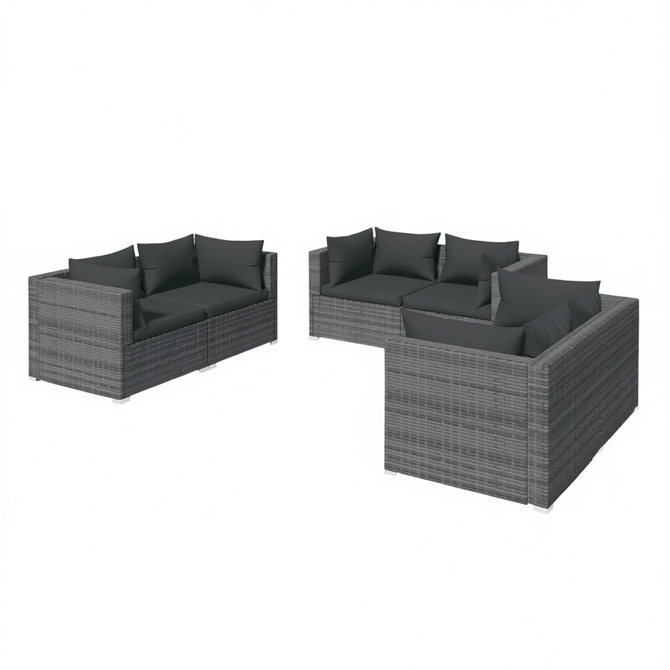 ชุดโซฟาหวายสีเทาสำหรับสวน 6 ที่นั่ง โครงเหล็กเคลือบสีฝุ่น ทนทาน เหมาะสำหรับใช้งานกลางแจ้ง ดีไซน์ร่วมสมัย