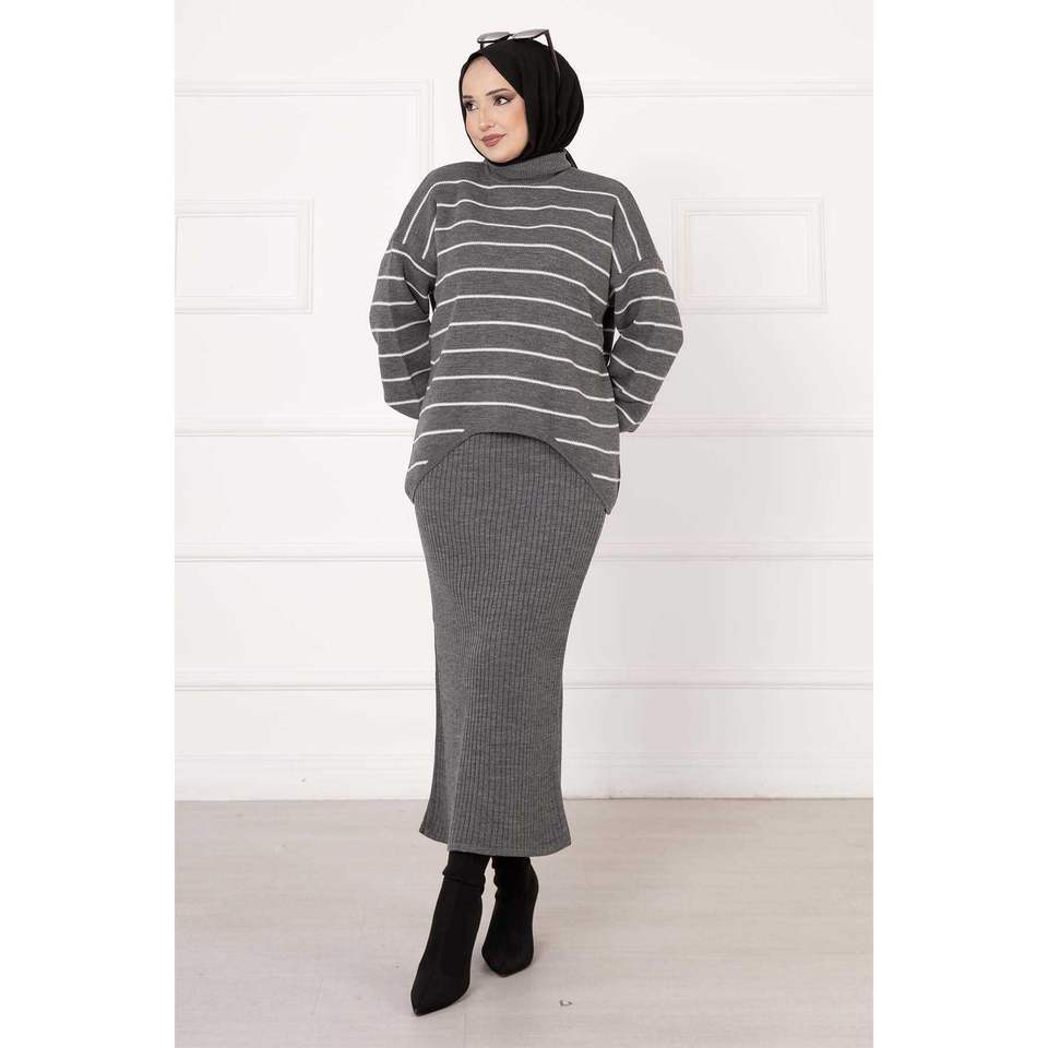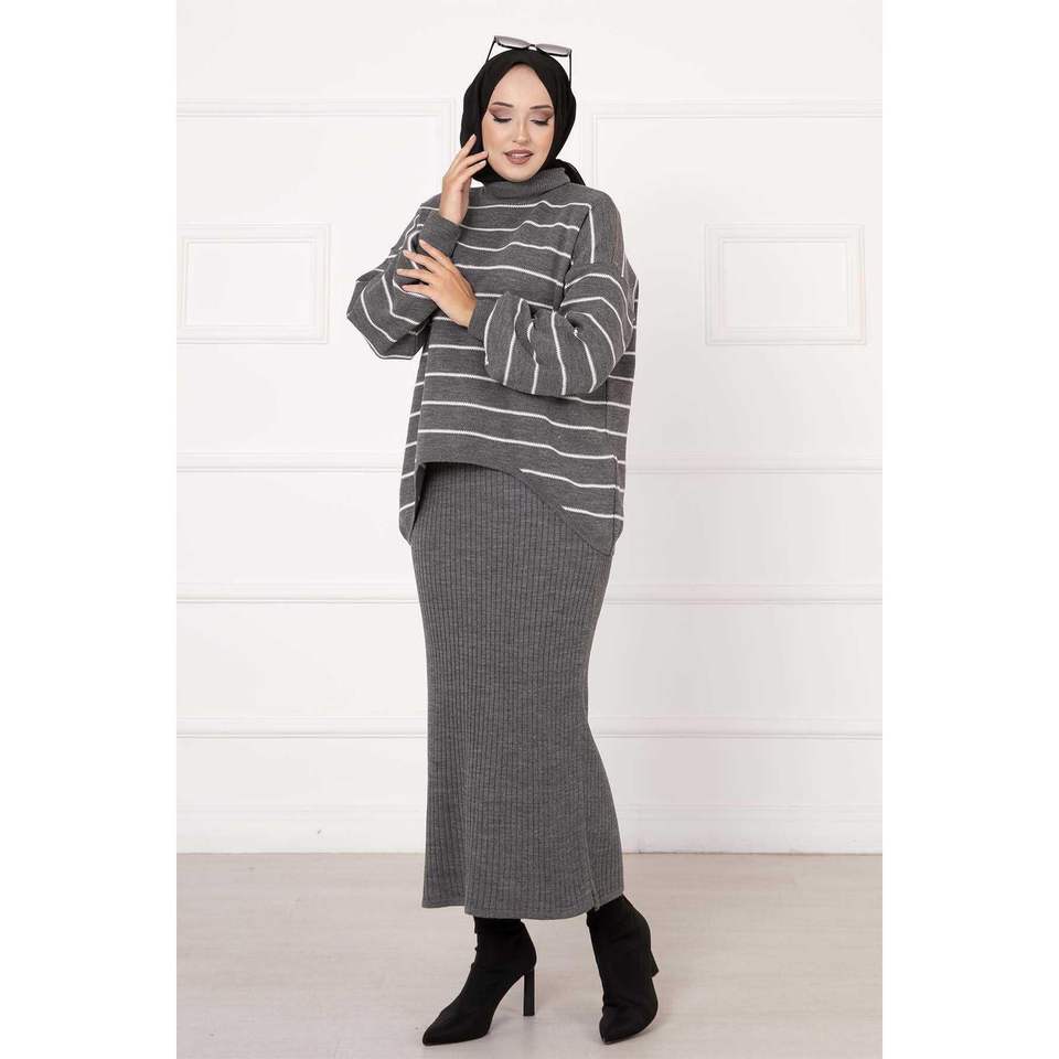 ชุดเดรสมินิแบบลำลอง2ชิ้นลายปักสีเทาสำหรับฤดูใบไม้ผลิและฤดูร้อน