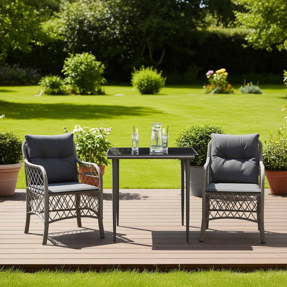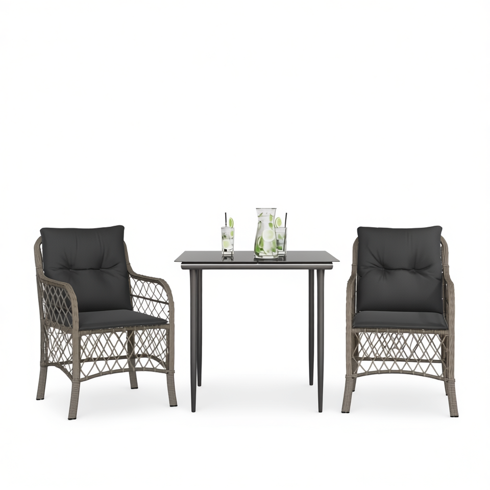 ชุดโต๊ะบิสโทรหวายเทียมสีเทาพร้อมเบาะรองนั่ง 2 ที่นั่ง เฟอร์นิเจอร์กลางแจ้งสำหรับสวน ดีไซน์ร่วมสมัย