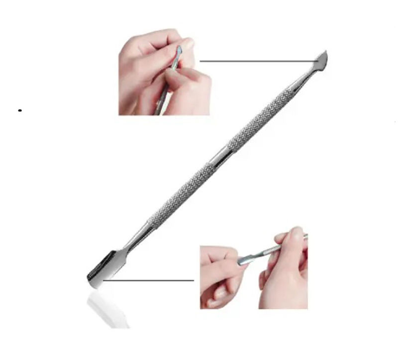 ชุดดันหนังกำพร้า4ชิ้น, เครื่องมือทำเล็บที่จำเป็นสำหรับการดูแลหนังกำพร้าด้ามจับโลหะสีเทา