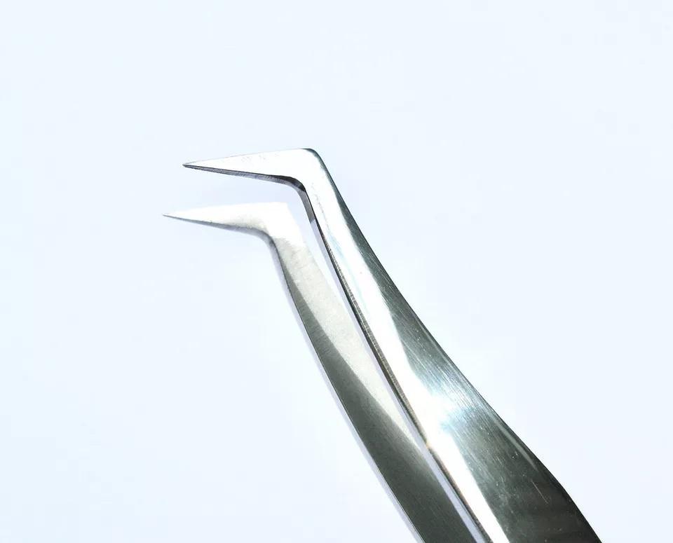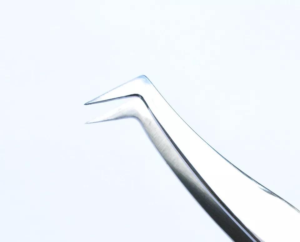 แหนบต่อขนตาสีเทาแบบมืออาชีพแหนบสเตนเลสสตีลความแม่นยำสูงปลายโค้งสำหรับขนตา