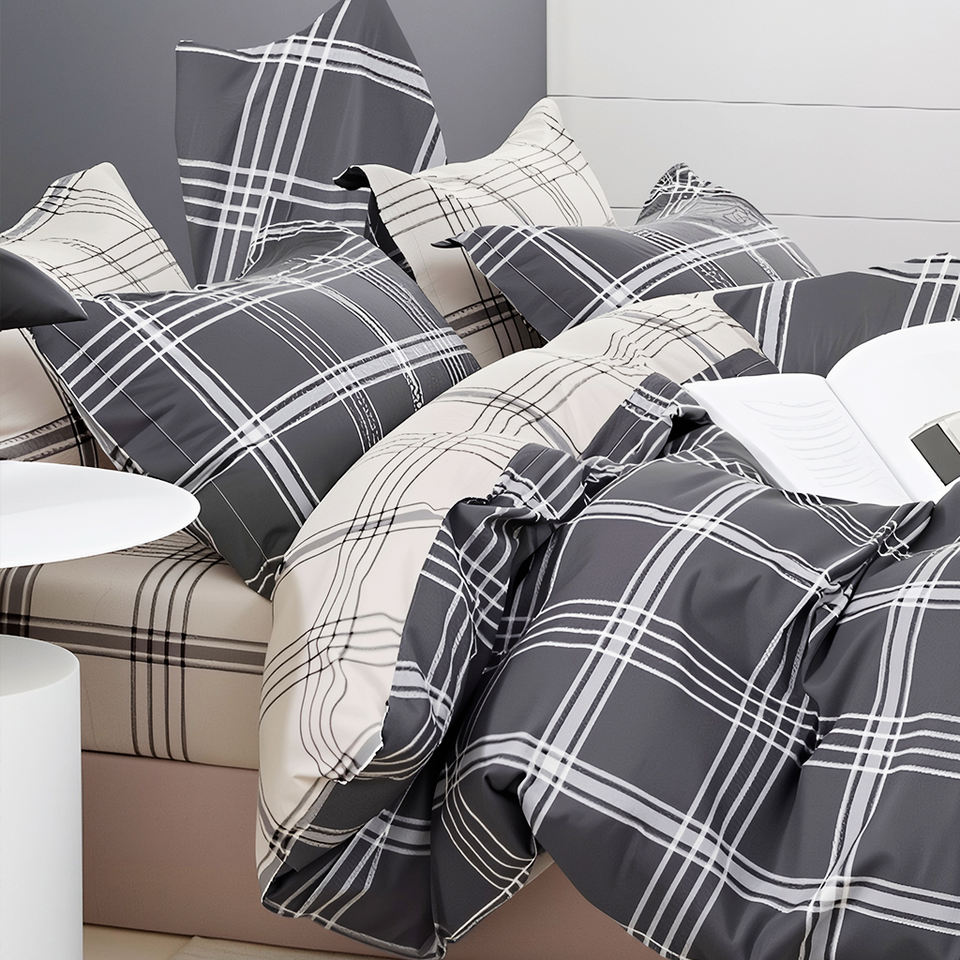 Gray Striped Cotton Fabric Eco-Friendly Washable 200TC European Style 3-Piece Bedsheet Set Duvet Cover Soft Skin-friendly Home