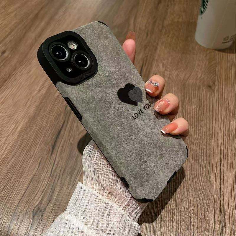 เคสโทรศัพท์มือถือลายหัวใจพิมพ์บนหนังเทียม TPU นุ่ม สีเทา สำหรับ iPhone 7 8 X Xr Xs 11 12 13 14 15 16 Pro