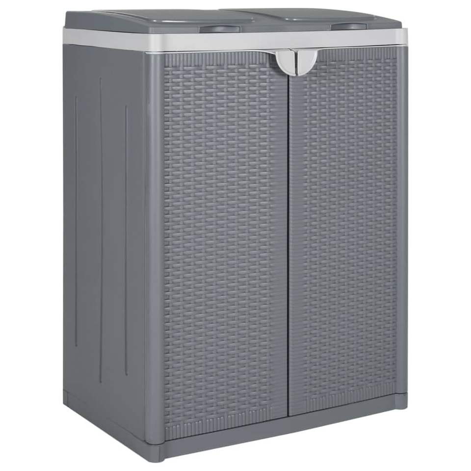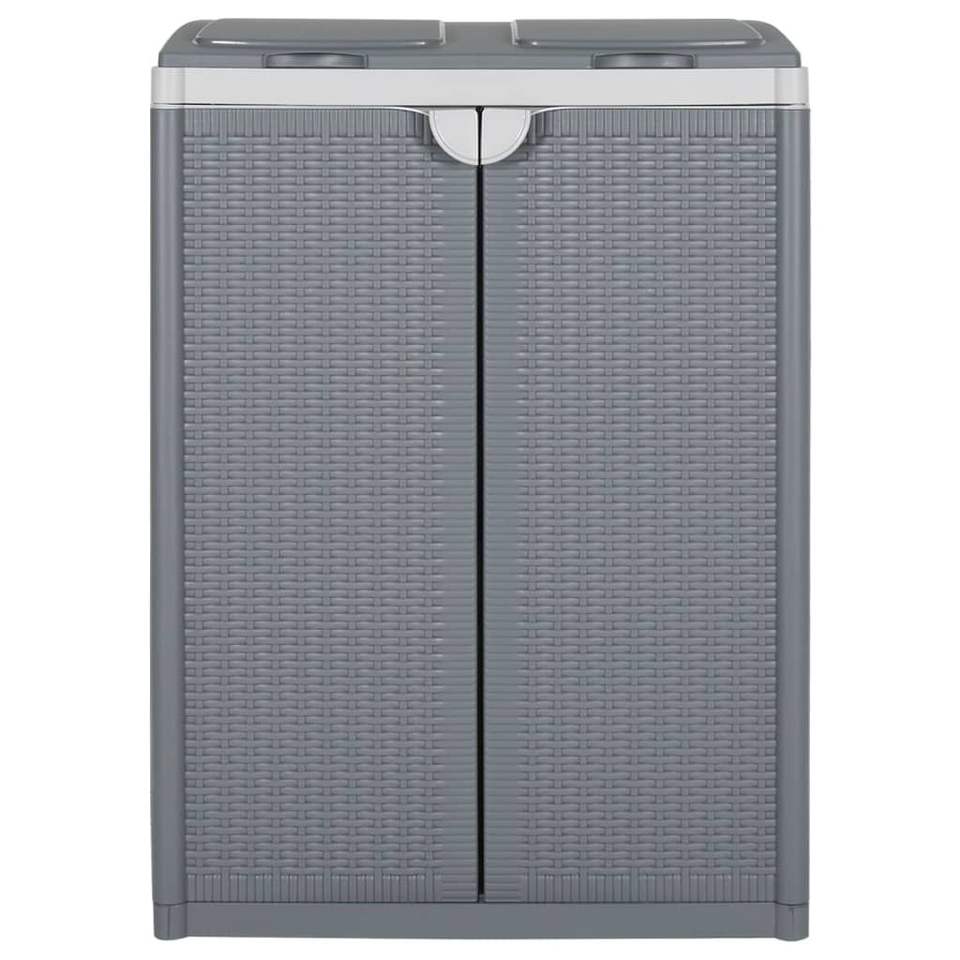 ถังขยะสีเทาแบบมี 2 ประตู ขนาด 25.6x17.7x34.6 นิ้ว ผลิตจากวัสดุ PP