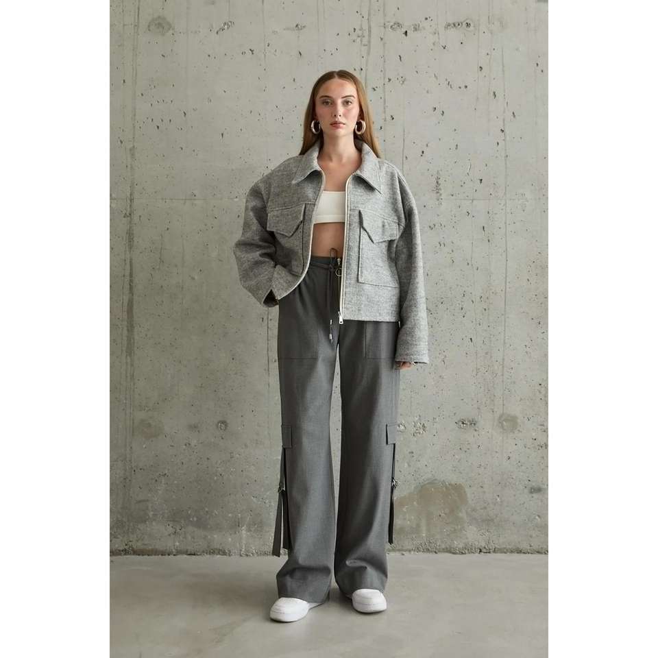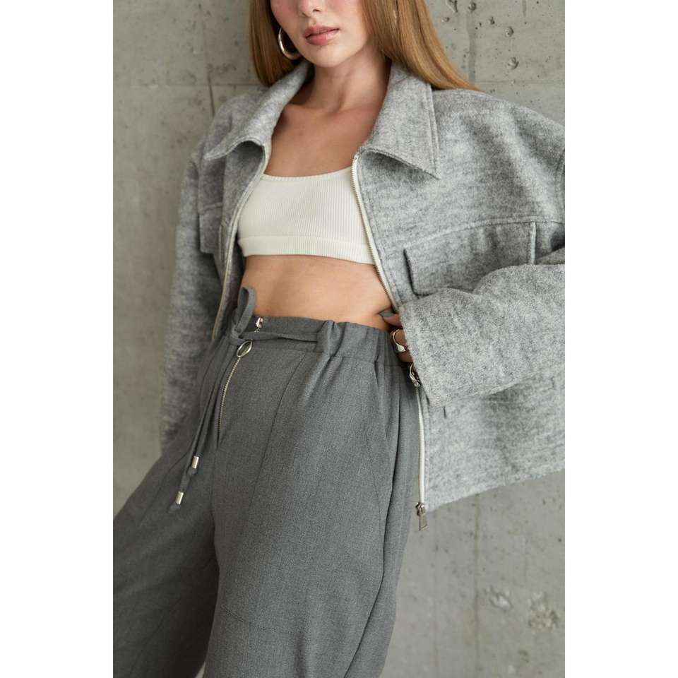 กางเกงขายาวสีเทาเอวสูงผ้าฝ้ายใยไผ่ระบายอากาศได้ดีสำหรับผู้หญิง