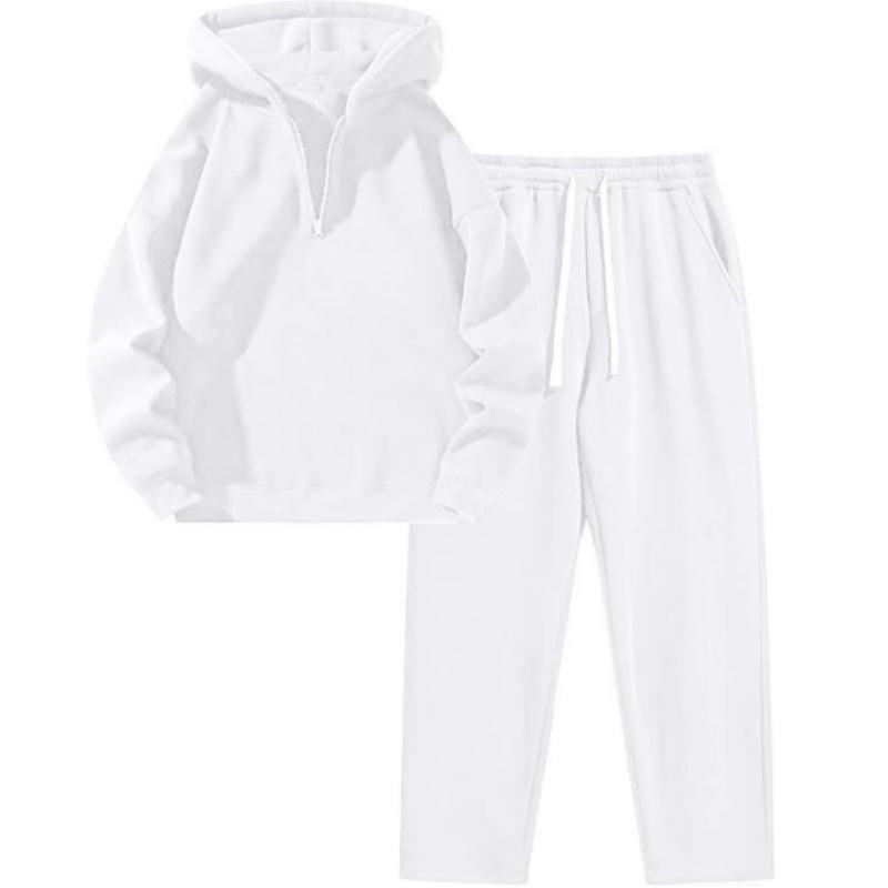 ชุดเซ็ตเสื้อฮู้ดและกางเกงวอร์มลำลองสำหรับผู้หญิง สีเทา 2 ชิ้น ผ้าโพลีเอสเตอร์ ดีไซน์กระเป๋า เหมาะสำหรับใส่ในฤดูใบไม้ร่วง