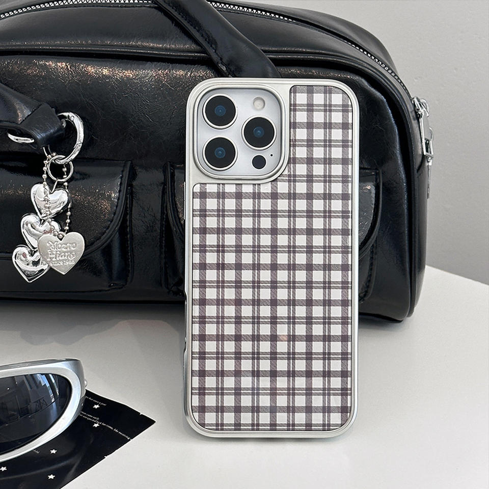 เคสโทรศัพท์ลายสก็อตสีเทาสำหรับ iPhone 16, สำหรับ iPhone 14 Pro Max พร้อมยางกันตก