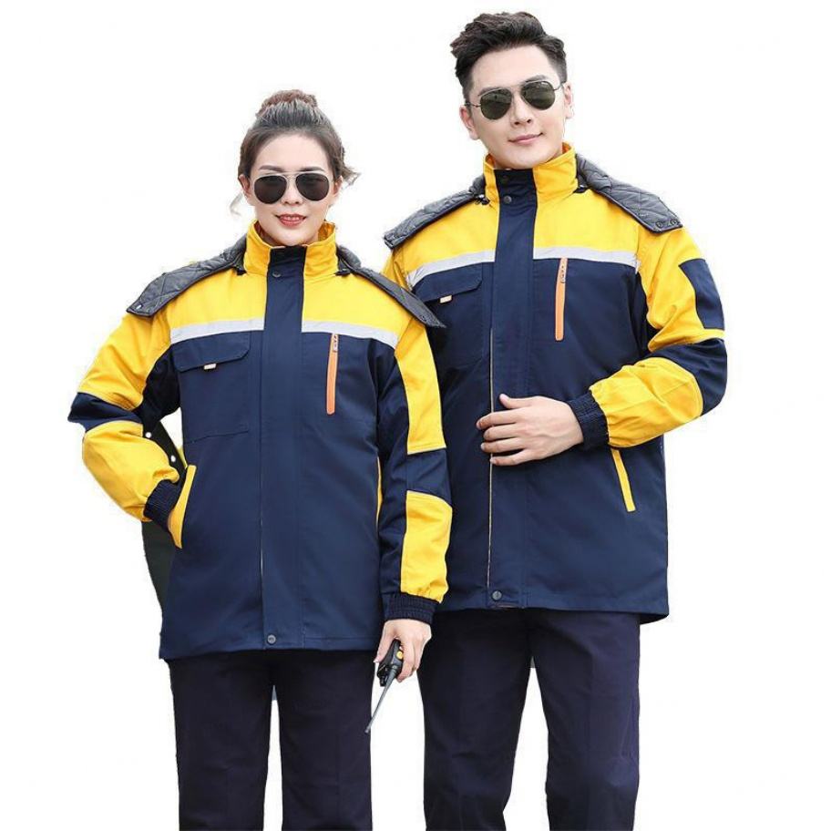 ชุดคลุมทำงานสีเทา-น้ำเงินสำหรับฤดูหนาว ชุดยูนิฟอร์มอุตสาหกรรมสำหรับช่างยนต์ เสื้อผ้าเพื่อความปลอดภัยในการทำงาน