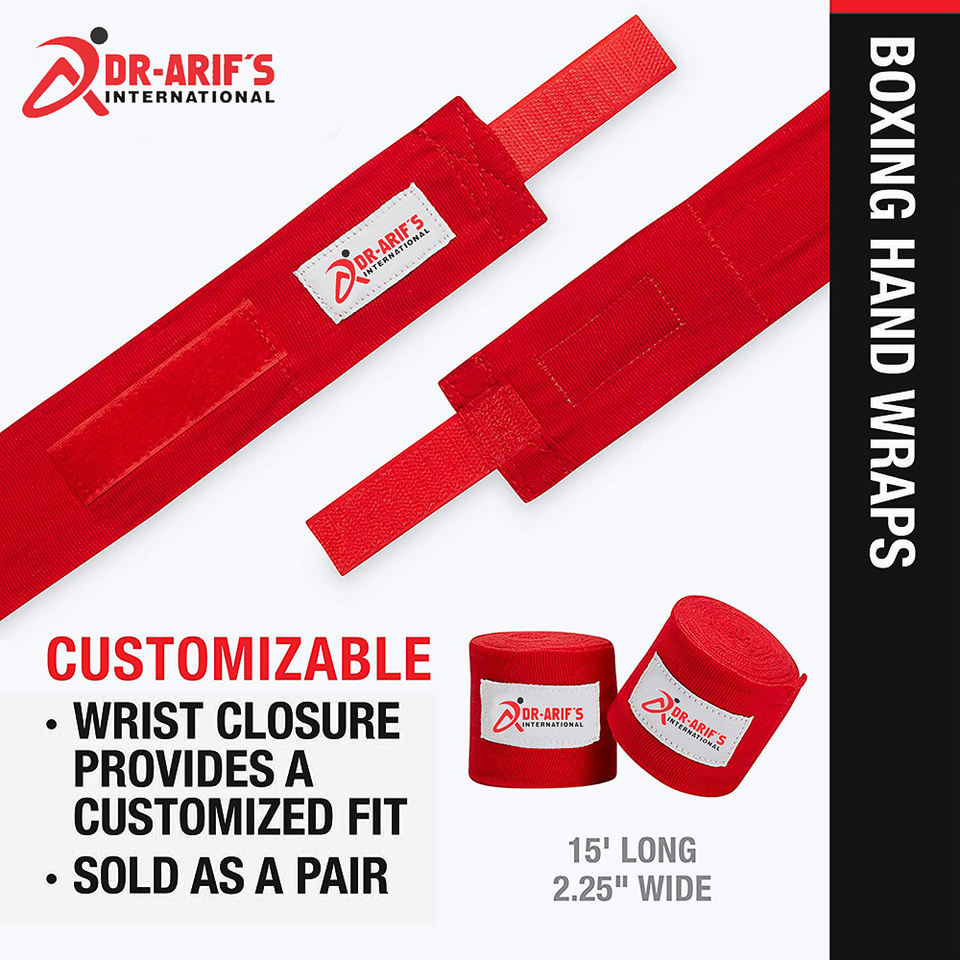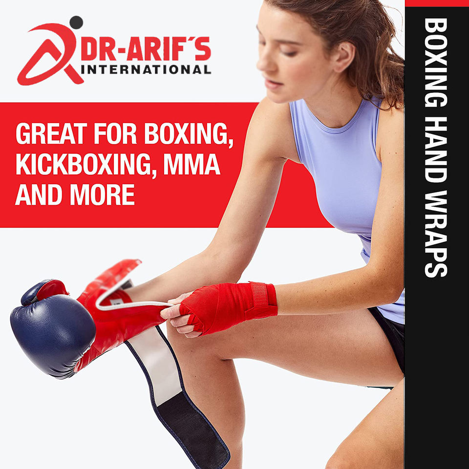 ผ้าพันมือยาว 180 นิ้ว คุณภาพเยี่ยม พร้อมแถบตีนตุ๊กแก น้ำหนักเบา รองรับมือได้ดีเยี่ยม สำหรับชกมวย คิกบ็อกซิ่ง และศิลปะการต่อสู้