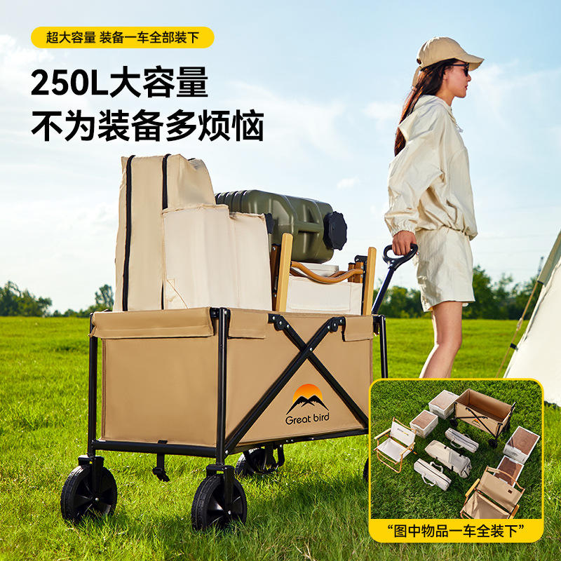 รถเข็นแคมป์ปิ้ง Great Bird รับน้ำหนักได้ 100 กก. พับเก็บได้ ล้อสี่ล้อ สำหรับใช้งานกลางแจ้งและในบ้าน