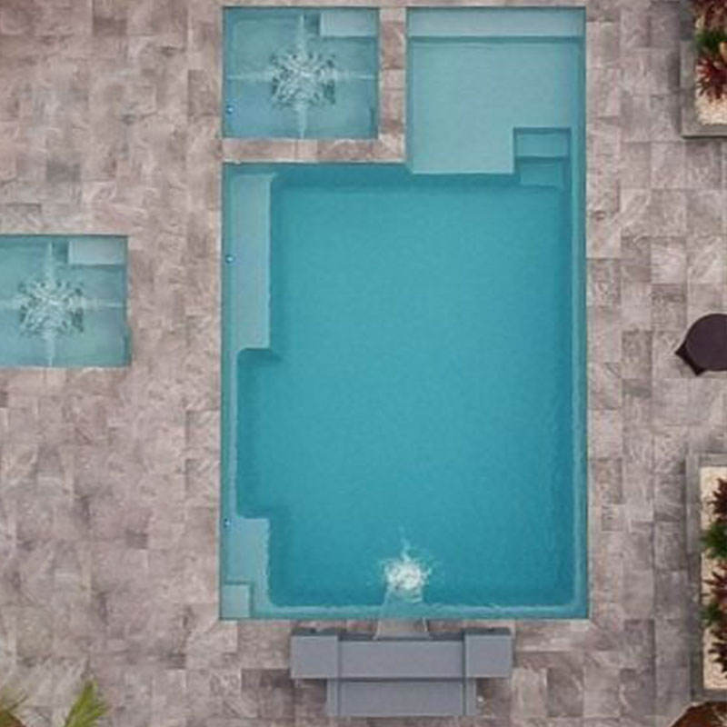 สระว่ายน้ำไฟเบอร์กลาสสั่งทำพิเศษ บ้านพักตากอากาศพร้อมสปา สีสันปรับแต่งได้ตามต้องการ