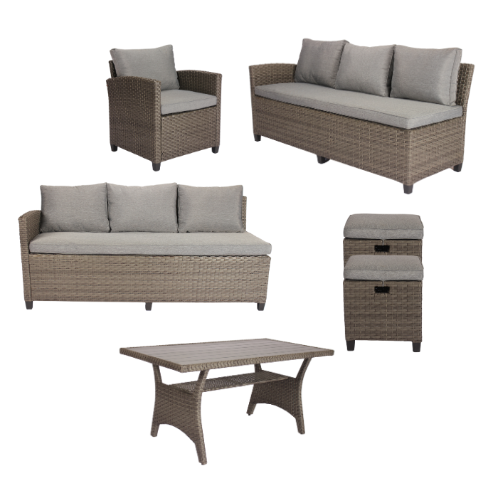 ชุดโต๊ะและเก้าอี้สำหรับรับประทานอาหารป้องกันรังสียูวีพร้อมหมอนหวายสี2B12เนื้อนิ่มผลิตจาก PE