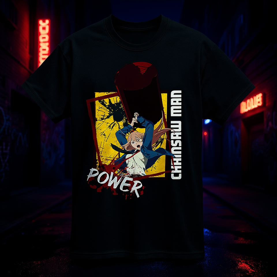 เกรทอีสเทิร์นเอนเตอร์เทนเมนท์ เชนซอว์แมน พาวเวอร์เสื้อยืดผู้ชายสำหรับผู้ใหญ่ทรงปกติแขนสั้นผ้าฝ้าย 100% คอกลมลำลอง