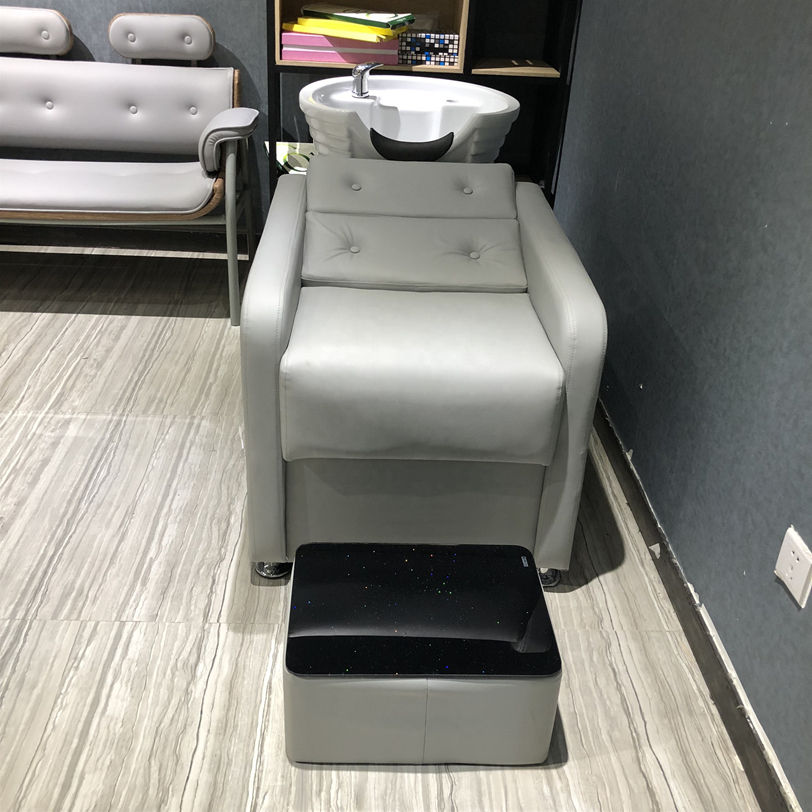 ชื่อผลิตภัณฑ์:เก้าอี้แชมพูโบราณสำหรับร้านทำผมไฟฟ้าแบบพกพาสีเทาทันสมัย