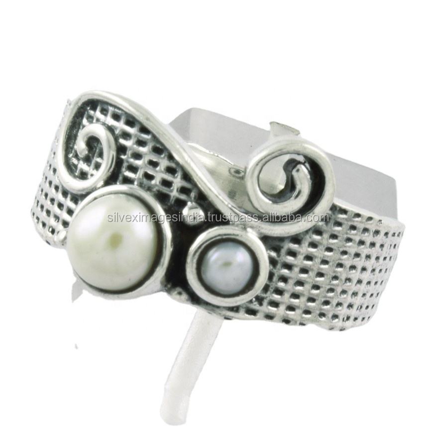 ความประทับใจที่ยอดเยี่ยม!! 925พลอยมุกแหวนเงินสเตอร์ลิงเครื่องประดับเงินขายส่งจากอินเดียเครื่องประดับเงินทำด้วยมือของชาวอินเดีย