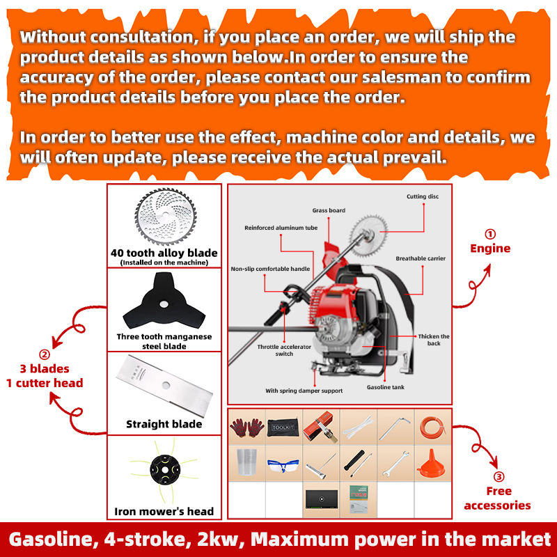 เครื่องตัดหญ้าอเนกประสงค์แบบสะพายหลัง ยี่ห้อ Great Intelli ใช้เครื่องยนต์เบนซิน 4 จังหวะ 31 ซีซี สำหรับใช้งานในสวนและฟาร์ม