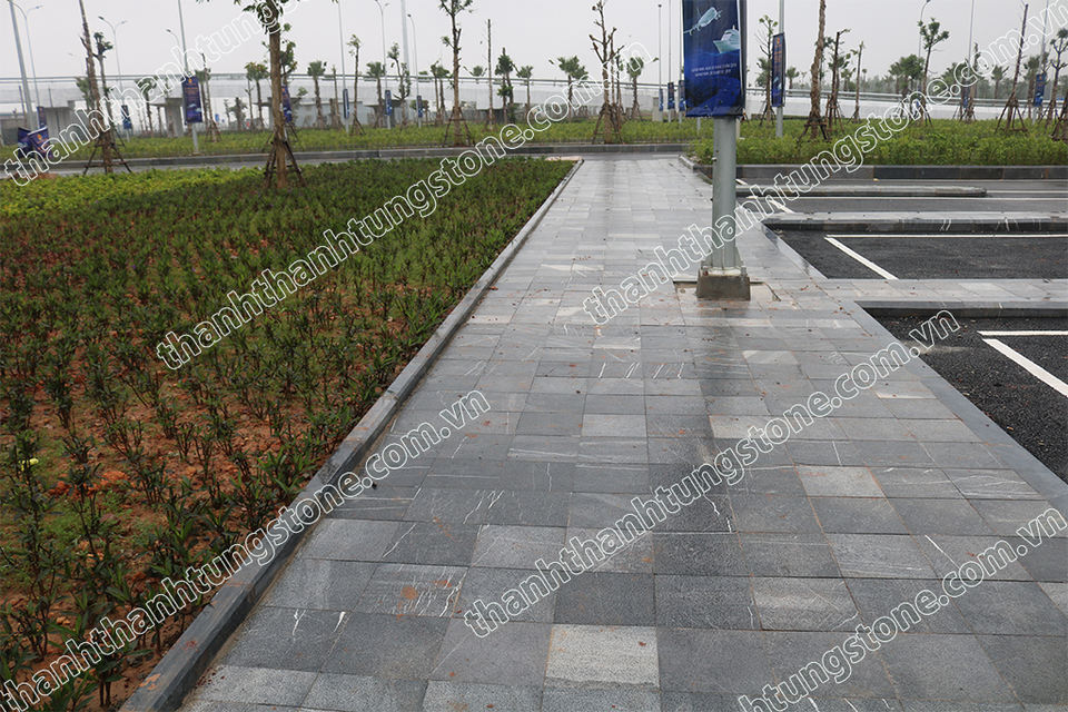กระเบื้องหินสีน้ำเงินสไตล์โมเดิร์นสำหรับภายนอกอาคาร คุณภาพสูงจากเวียดนาม ผิวสัมผัสแบบ Bush-Hammered กันน้ำ ทนทาน น้ำหนักเบา หรูหรา