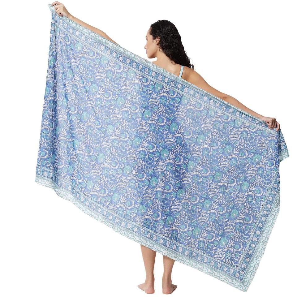 ผ้าซิ่นพิมพ์ลายบล็อกด้วยมือ ราคาสุดคุ้ม สำหรับผู้หญิง ผ้าคลุมบิกินี่น้ำหนักเบา เหมาะสำหรับใส่ไปเที่ยวทะเลและรีสอร์ทในช่วงฤดูร้อน