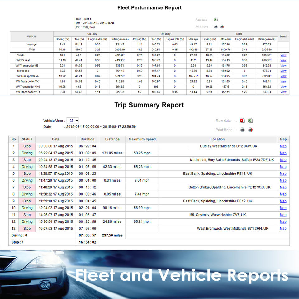 การรวมกัน:การติดตามแบบเรียลไทม์, เส้นทาง Breadcrumb, รั้วทางภูมิศาสตร์, รายงานการเดินทาง