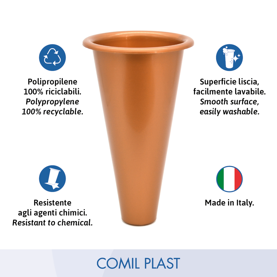 แจกันอนุสรณ์สถานสไตล์ยุโรปคุณภาพเยี่ยม วัสดุพลาสติก พร้อมวงแหวนทองสัมฤทธิ์สำหรับตกแต่ง สำหรับห้องศักดิ์สิทธิ์หรือหอศพ ผลิตด้วยวิธีฉีดขึ้นรูป สีทองแดง