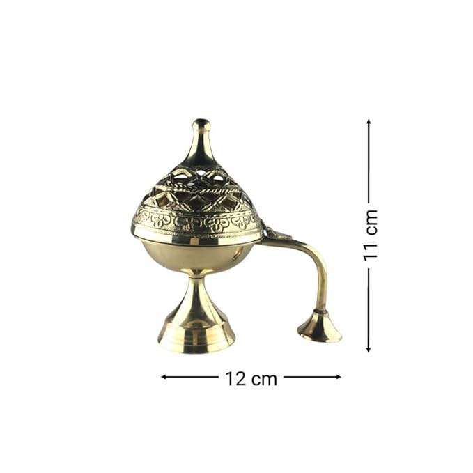 กระถางธูปทองเหลืองทรงกลมแบบดั้งเดิมสำหรับน้ำมันหอมระเหยและพิธีกรรมบูชาประจำวันที่เงียบสงบรอบๆบ้าน